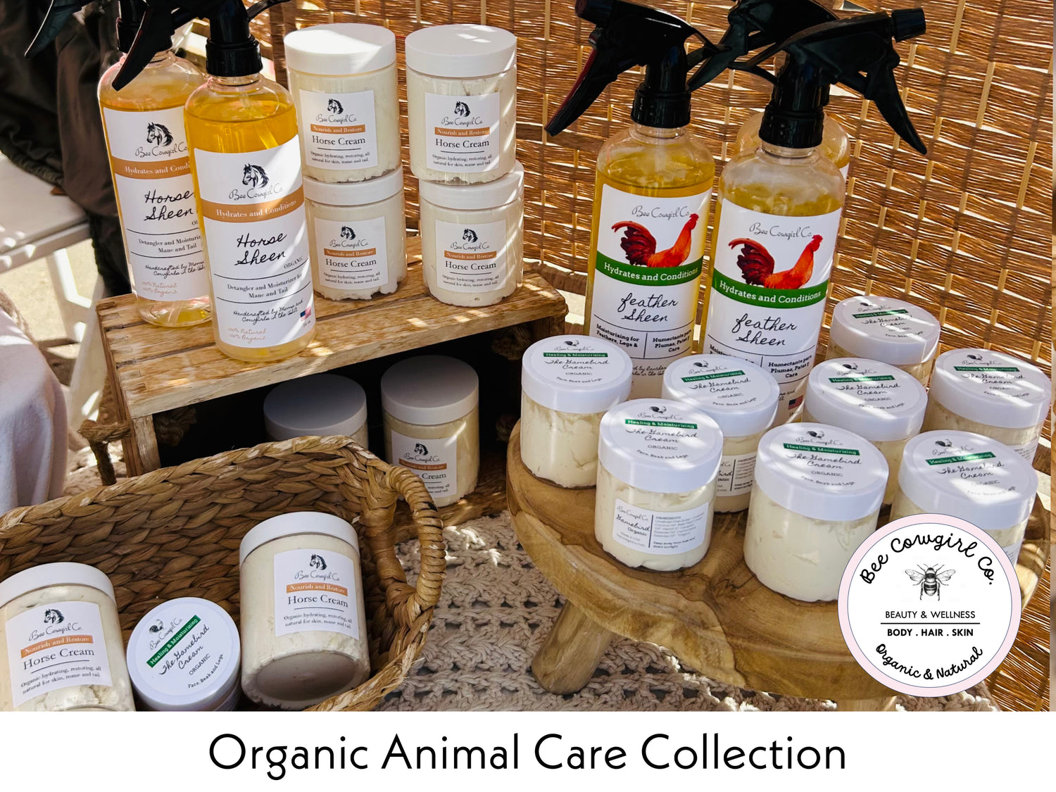 At Bee Cowgirl Co., we strive to provide 100% organic products that embrace a truly natural way to nourish, restore, heal and replenish. Luxurious all natural body butters, scrubs and face creams leave the skin beautifully hydrated and regenerated. We have natural solutions for the Family, for Horses, for Chicken and Dogs!